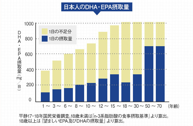 10代のDHA/EPAの1日摂取量は500mg以上も不足!