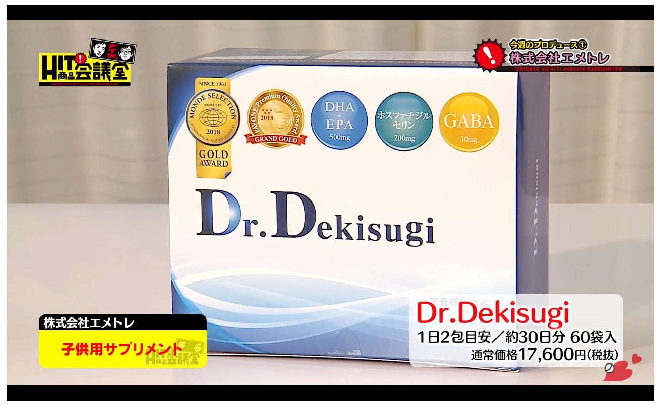 DHA・EPA500mg、ホスファチジルセリン200mg、GABA30mgの3大成分を贅沢に配合!子供向けサプリメントの中でも抜群かつ最適な配合量を実現!